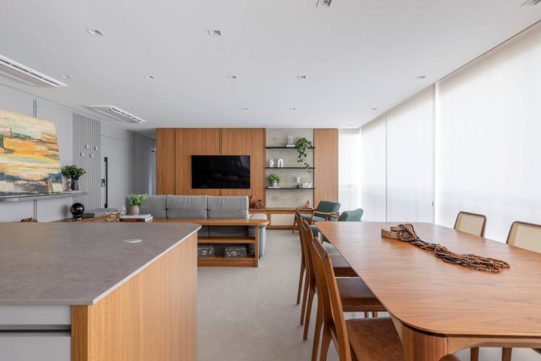 Apartamento de 190 m² ganha personalidade entre tons neutros e cores estratégicas 12 de fevereiro de 2026