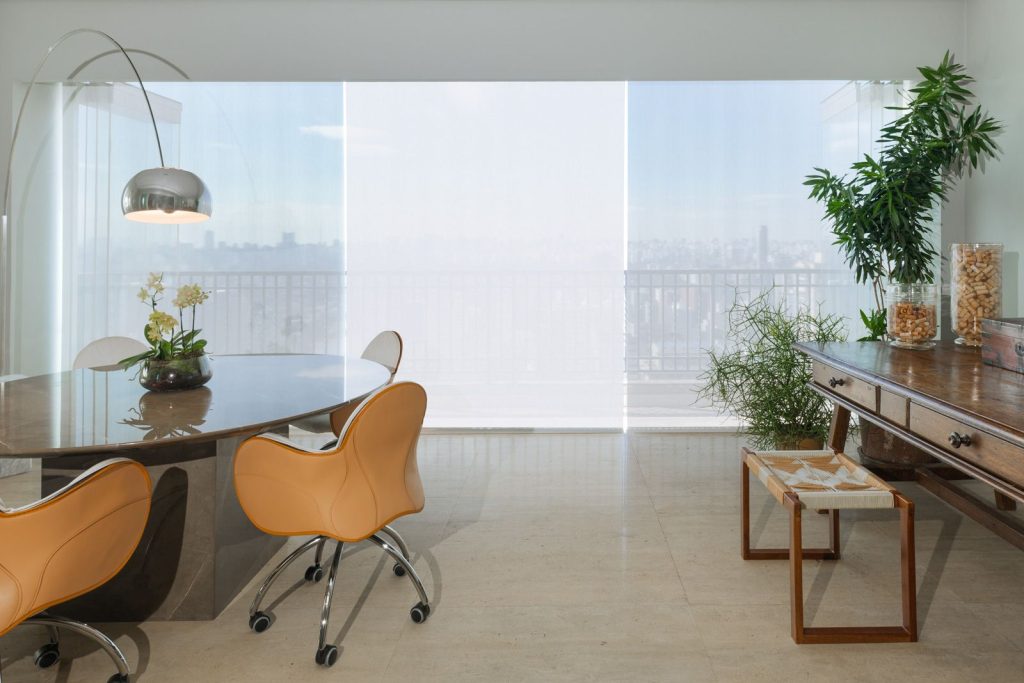 Criada especialmente para varandas e vãos generosos, a novidade alia design elegante e tecnologia de controle térmico. A tela solar de alto desempenho reduz a entrada de calor e suaviza a luz natural sem bloquear a vista, mantendo a paisagem como parte do ambiente.