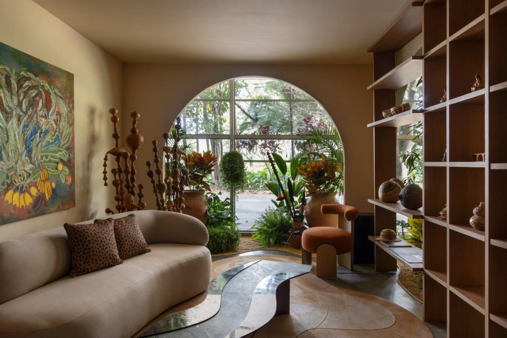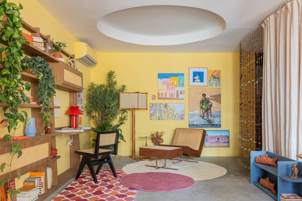 O Relicário de Voinha parte da memória afetiva da casa das avós para construir uma narrativa espacial onde cotidiano, afeto e cultura se entrelaçam. Assinado pelo Mangaba Estúdio, o ambiente propõe uma inversão de hierarquias ao posicionar o quintal como elemento central, estruturando a circulação, a ventilação cruzada e a relação entre interior e exterior. Materialidades como piso de caquinho, ladrilho hidráulico, palha e renda, somadas à presença de artistas e artesãos sergipanos, reforçam uma arquitetura que não apenas referencia o território, mas o traduz como experiência sensível e compartilhada.