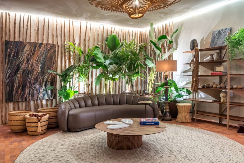 Entre adobe e capim dourado, o ambiente assinado por Marcus Garcia traduz o Tocantins como experiência arquitetônica e afetiva. O arquiteto parte da ancestralidade construtiva da região – com pisos batidos e técnicas de terra crua reinterpretadas em chave contemporânea – para construir uma narrativa sobre pertencimento e pioneirismo. O paisagismo de Divino Alcan, composto por espécies locais trazidas diretamente do estado, e a curadoria de Ronan Gonçalves, que incorpora as bonecas Ritxòkò do povo Karajá, reforçam o DNA regional em cada escolha material. Inspirado na história de Dona Arlê – mãe do arquiteto e uma das pioneiras de Palmas –, o espaço conduz o visitante por uma trajetória que começa na origem histórica do norte de Goiás e avança em direção ao futuro de um estado jovem, construído sob o sol intenso do cerrado.