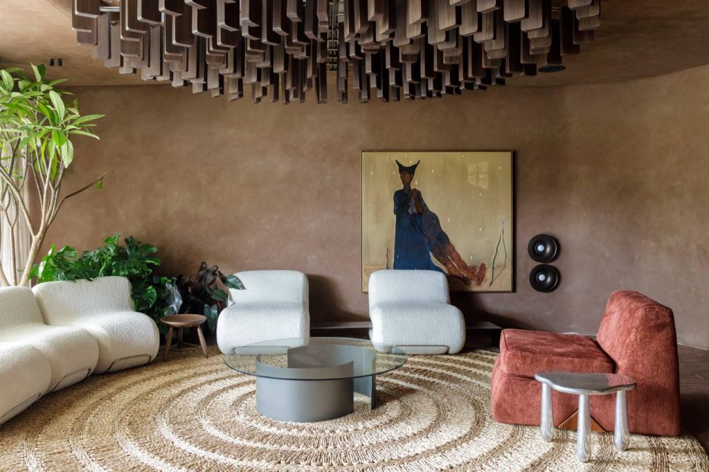 Entre ancestralidade e contemporaneidade, o ambiente assinado por Larissa Catossi e Guilherme Abreu traduz a potência cultural do Maranhão por meio de uma arquitetura sensorial e simbólica. Inserido no pavilhão do estado, o projeto articula materiais como o barro – que evoca origem, abrigo e memória – e o aço inox, que surge como contraponto urbano e metáfora de deslocamento. A composição se completa com cores ligadas à identidade maranhense e com uma curadoria que integra arte, design e cultura popular, construindo um espaço onde tradição e transformação coexistem como parte de uma mesma narrativa.