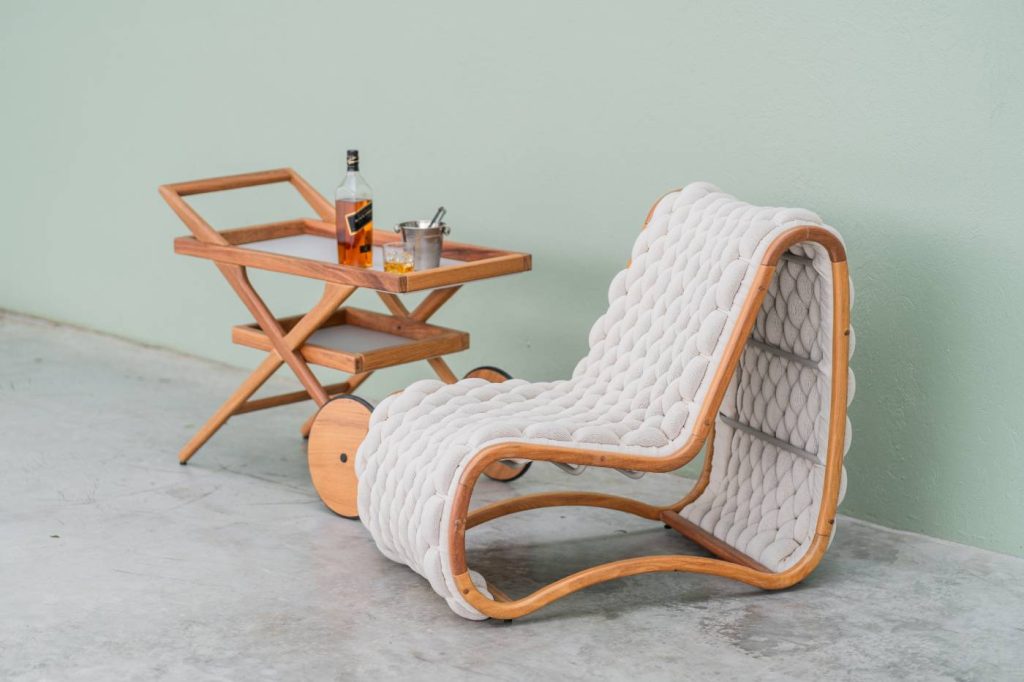 A cadeira investiga técnicas artesanais e materiais naturais, resultando em uma estrutura leve e envolvente. O trançado cria uma superfície dinâmica, que reforça a relação entre design e saber manual.