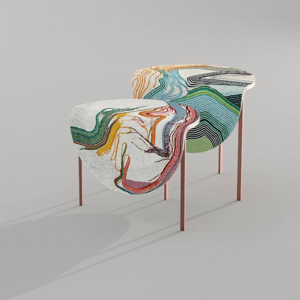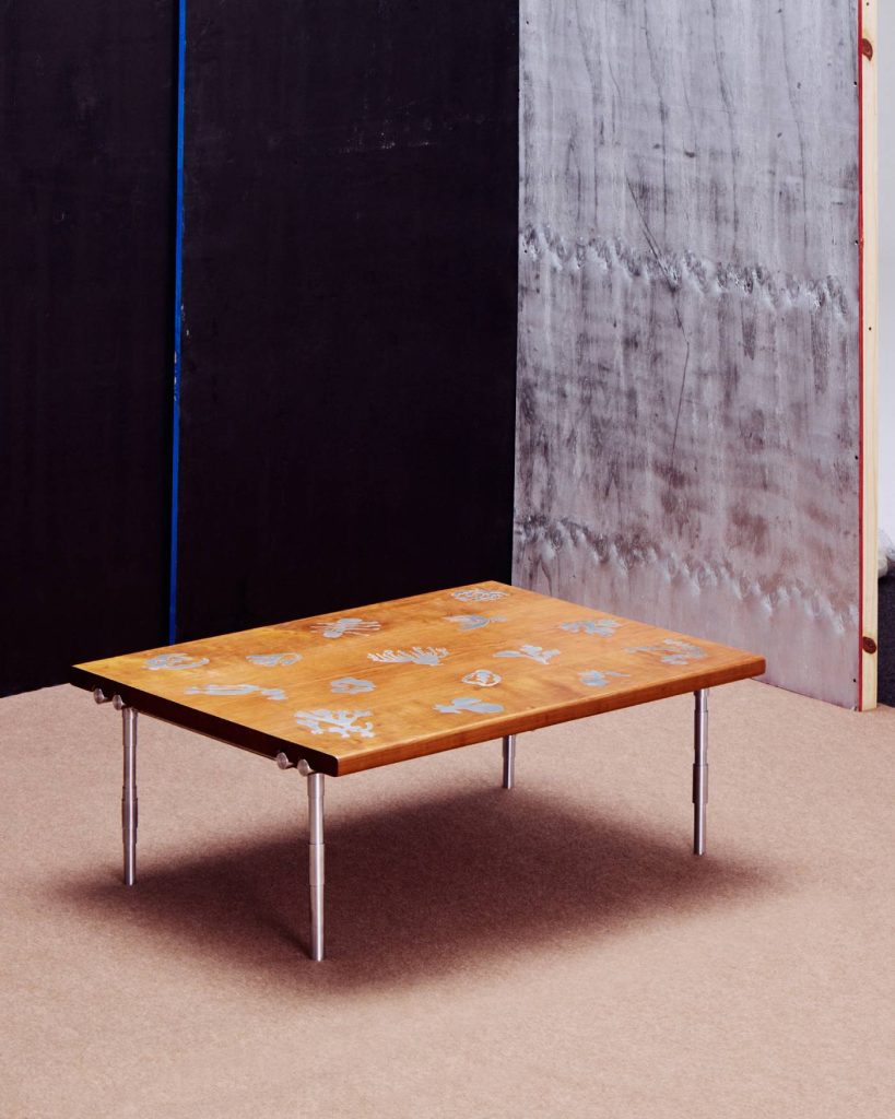 A mesa baixa desenvolvida por Luccas Iatauro, à frente do estúdio Puupa, propõe uma leitura lúdica e simbólica da superfície. Com aplicação de elementos gráficos que remetem a formas orgânicas, a peça explora o contraste entre estrutura racional e expressão livre. O mobiliário assume, assim, uma dimensão narrativa, aproximando-se de um campo mais experimental dentro do design.