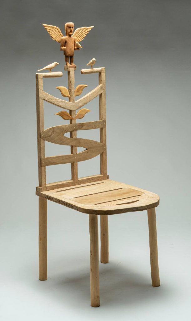 A cadeira evidencia o saber tradicional e a relação direta com a matéria-prima. O desenho incorpora elementos simbólicos e construtivos que refletem a cultura local, reforçando o valor do fazer manual no contexto contemporâneo.