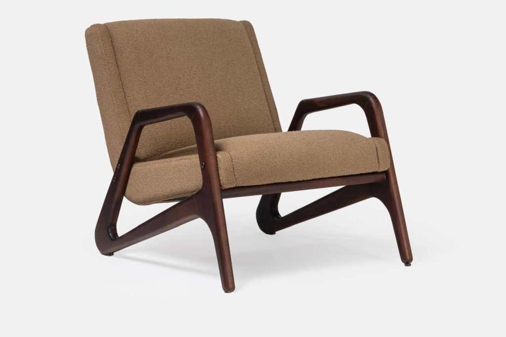A poltrona Alento aposta em uma linguagem elegante e estruturalmente bem resolvida, combinando madeira e estofamento em proporções equilibradas. A peça reforça o diálogo entre design autoral e produção seriada.