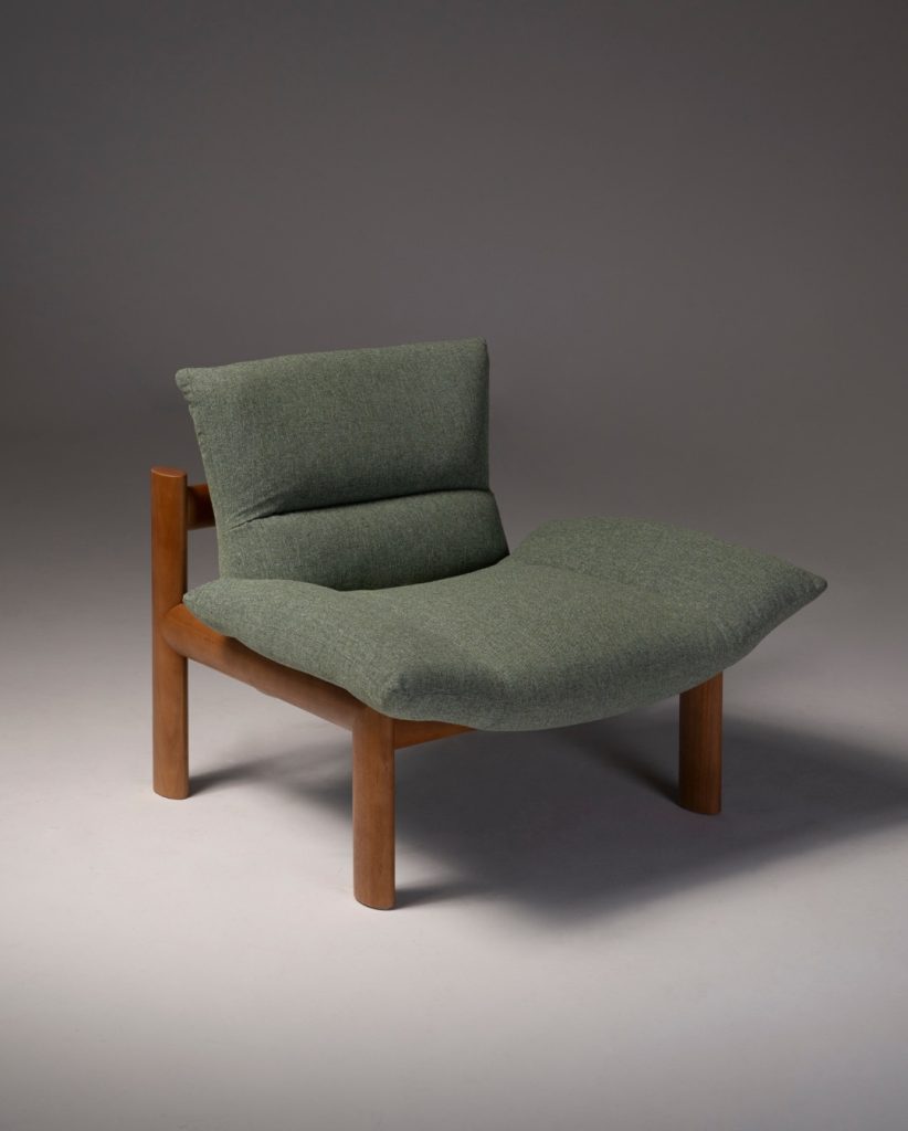 Poltrona Verena, do Estúdio Felipe Madeira em colaboração com a Folio e venda na Boobam, revisita o modernismo brasileiro em chave contemporânea | Foto: Divulgação