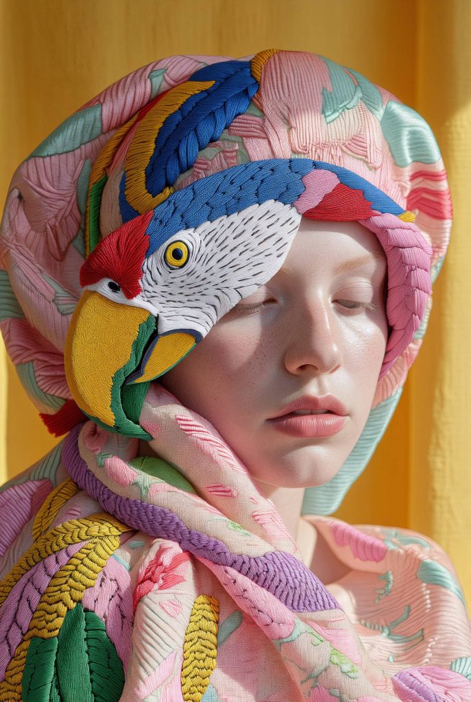 Com sensibilidade aguçada e imaginação sem fronteiras, Hanna Inaiah (@hannainaiah) reinventa os contornos da arte ao entrelaçar bordados artesanais – aprendidos ainda na infância – com o universo da inteligência artificial. Sua obra não apenas mistura moda, design de superfície e tecnologia: ela costura, ponto a ponto, uma nova linguagem visual em que o toque humano e o algoritmo se encontram em harmonia poética.