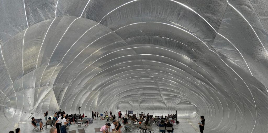 Instalação criada para a Bienal de Arquitetura do Chile explora materiais simples e estruturas efêmeras, uma constante na obra do arquiteto | Foto: Cortesia de Smiljan Radić/Divulgação