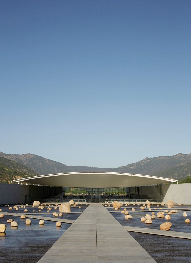 Projeto combina arquitetura contemporânea e paisagem andina em um complexo dedicado à produção e degustação de vinhos | Foto: Cristobal Palma/Divulgação
