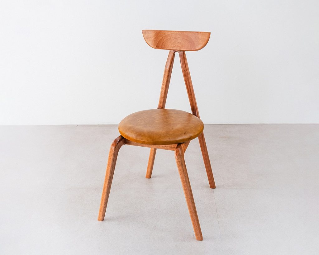 Com desenho enxuto e estrutura de madeira maciça, a cadeira Cesna combina marcenaria artesanal e proporções leves, com assento de couro que reforça o conforto sem abrir mão da estética | Foto: Divulgação